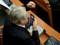 PARLIAMENTARY SESSION - The Speaker of the Parliament, Lindita Nikolla, the Chairman of the Democratic Party, Sali Berisha speaking in a moment of tension during a parliamentary session. Even though they were excluded from the parliament for 10 days, the chairman of the DP, Sali Berisha, and MPs Flamur Noka and Oerd Bylykbashi managed to break through the members of the Guard of the Republic and entered. In a session where at one point there was no electricity, the opposition MPs did not allow its holding by verbally attacking the ministers and demanding the presence of Prime Minister Edi Rama to debate about the McGonigal case.