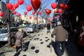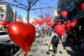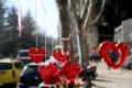 Heart-shaped decorations on a street in Tirana, on the occasion of Valentine's Day.