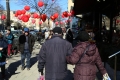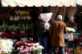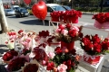 Flowers for sale on a street in Tirana, decorated on the occasion of Valentine's Day.