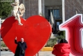 A man poses while being photographed in a decoration in Skanderbeg square in Tirana, on the occasion of Valentine's Day.