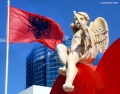 The character of Cupid stands on a decoration in Skenderbeg Square in Tirana, on the occasion of Valentine's Day.