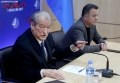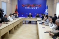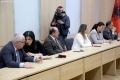 MP Edmond Spaho and members Jozefina Topalli and Lefter Maliqi speaking during a leadership meeting called by the chairman of the democratic party, Sali Berisha in the blue headquarters. During the meeting, Berisha spoke about the protest in front of the parliament and attacked Prime Minister Edi Rama. He has announced a protest on March 3, which coincides with the day when the Tirana court is expected to issue a verdict on the DP logo and seal.