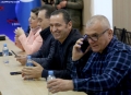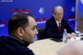 MPs Bujar Leskaj and Isuf Celaj during a meeting of the Chairman of the Democratic Party, Sali Berisha with MPs of the DP parliamentary group in the Blue headquarters. He attacked Prime Minister Edi Rama regarding the McGonigal case and spoke about the exclusion of some DP MPs from the parliamentary session after they blocked the podium. He also announced that another protest will be held in front of the parliament.