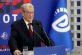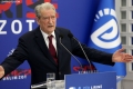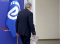 The Chairman of the Democratic Party, Sali Berisha exiting a press conference at the blue headquarters. He emphasized the importance of February 20, 1991, when the bust of former dictator Enver Hoxha was brought down, adding that the message of that day is still relevant today.