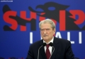 SALI BERISHA SPEAKS IN CONFERENCE - The Chairman of the Democratic Party, Sali Berisha speaking during a press conference at the blue headquarters. He emphasized the importance of February 20, 1991, when the bust of former dictator Enver Hoxha was brought down, adding that the message of that day is still relevant today.