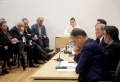 The chairman of the democratic party, Sali Berisha and MPs Flamur Noka, Luciano Boci and Edi Paloka speaking during a meeting of the national council of the DP during which it was decided that another protest will be held on February 23 before the parliament.