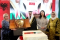 The Ambassador of Kuwait in Tirana, Fayez Mishari Al-Jassim and the Minister of State for Services and Standards, Milva Ekonomi during a reception at the Embassy of Kuwait in Tirana on the occasion of the 62nd anniversary of the Independence Day and the 32nd anniversary of the Liberation Day of the State of Kuwait. During the reception, the participants talked about the relations between the countries and the projects financed by the Kuwait Fund for Development.