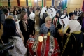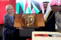 RECEPTION OF THE KUWAIT EMBASSY - The Ambassador of Kuwait in Tirana, Fayez Mishari Al-Jassim, the Deputy Minister for Europe and Foreign Affairs, Megi Fino and the Minister of State for Services and Standards, Milva Ekonomi cutting the ceremonial cake during a reception at the Embassy of Kuwait in Tirana on the occasion of the 62nd anniversary of the Independence Day and the 32nd anniversary of the Liberation Day of the State of Kuwait. During the reception, the participants talked about the relations between the countries and the projects financed by the Kuwait Fund for Development.