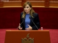 MP Jorida Tabaku speaking during a parliamentary session where there were debates between the majority and opposition MPs regarding the absence of Prime Minister Edi Rama. The opposition MPs accused the Speaker of the Parliament, Lindita Nikolla, of constantly breaking the rules, while they demanded to talk about the McGonigal issue, despite the fact that Prime Minister Edi Rama has been on an official visit to Japan for several days.