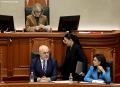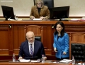 Prime Minister Edi Rama and Minister of State for relations with Parliament, Elisa Spiropali speaking during a parliamentary session, in which the opposition had requested an interpellation and a motion for a debate with the Prime Minister regarding the McGonigal issue. The Prime Minister held his speech by stating that the indictment brought against the former high official of the FBI, Charles McGonigal, does not implicate either him or the Albanian government. At the end of the speech, Prime Minister Rama left the session, not giving clarifications or answers to the deputies.