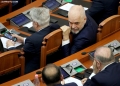 Prime Minister Edi Rama sitting among the MPs of the Socialist Party during a parliamentary session, in which the opposition had requested an interpellation and a motion for a debate with the Prime Minister regarding the McGonigal issue. The Prime Minister held his speech by stating that the indictment brought against the former high official of the FBI, Charles McGonigal, does not implicate either him or the Albanian government. At the end of the speech, Prime Minister Rama left the session, not giving clarifications or answers to the deputies.