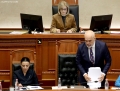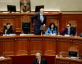 MP Sali Berisha speaking and Prime Minister Edi Rama getting up to speak during a parliamentary session, in which the opposition had requested an interpellation and a motion for a debate with the Prime Minister regarding the McGonigal issue. The Prime Minister held his speech by stating that the indictment brought against the former high official of the FBI, Charles McGonigal, does not implicate either him or the Albanian government. At the end of the speech, Prime Minister Rama left the session, not giving clarifications or answers to the deputies.