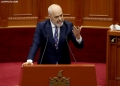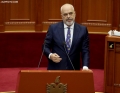 Prime Minister Edi Rama speaking during a parliamentary session, in which the opposition had requested an interpellation and a motion for a debate with the Prime Minister regarding the McGonigal issue. The Prime Minister held his speech by stating that the indictment brought against the former high official of the FBI, Charles McGonigal, does not implicate either him or the Albanian government. At the end of the speech, Prime Minister Rama left the session, not giving clarifications or answers to the deputies.