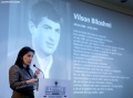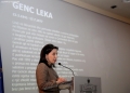 The Minister of Education and Sports, Evis Kushi speaking during a memorial for the teacher poets Vilson Blloshmi and Genc Leka, organized by the Authority for Information on Former State Security Documents in cooperation with the Ministry of Education and Sports. The two poets were shot by the communist regime because of their writings, which are now collected in a work called Kur Bota ish ne gjume, by publisher Bardhyl Musai.
