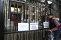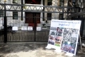 Youngsters of the Youth Forum of the Democratic Party placing sings on the railings of the Court of Appeal, while in front of its door there is a poster in support of Berisha's group within the party. The court is expected to decide on the ownership of the seal and logo of the Democratic Party, after the decision of the first instance, by judge Agron Zhukri, was appealed by the Alibeaj group.