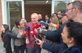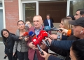 The chairman of the Freedom party, Ilir Meta speaking to journalists after leaving the headquarters of the democratic party. He held a meeting with the former prime minister, Sali Berisha, regarding the upcoming local elections on May 14.