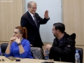 SALI BERISHA IN CONFERENCE - Former Prime Minister, Sali Berisha and the head of the Press Office of the Democratic Party, Alfred Lela entering a press conference in the premises of the blue headquarters. During his speech, Berisha said that he would enter the election in a coalition with the freedom party of Ilir Metes and repeated that he would not cooperate with Enkelejd Alibeaj.
