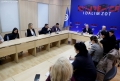 Former Prime Minister, Sali Berisha and the head of the Press Office of the Democratic Party, Alfred Lela speaking in a press conference in the premises of the blue headquarters. During his speech, Berisha said that he would enter the election in a coalition with the freedom party of Ilir Metes and repeated that he would not cooperate with Enkelejd Alibeaj.