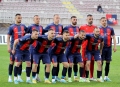 Partizani players pose before the football match, Vllaznia of Shkodra vs Partizani, 1-1, valid for the Albanian Super League, played at the Loro Borici stadium in Shkodra.