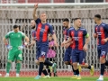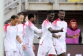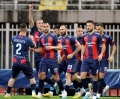 Partizani players celebrate scoring a goal during the football match, Vllaznia of Shkodra vs Partizani, 1-1, valid for the Albanian Super League, played at the Loro Borici stadium in Shkodra.
