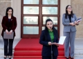 PRESS CONFERENCE AFTER THE GOVERNMENT MEETING - Minister of Finance and Economy, Delina Ibrahimaj and Deputy Prime Minister and Minister of Infrastructure and Energy, Belinda Balluku speaking at a press conference in front of the Prime Minister's office, after a meeting of government, regarding the approved decisions.
