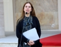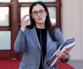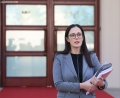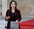 Minister of Tourism and Environment, Mirela Kumbaro speaking at a press conference in front of the Prime Minister's office, after a meeting of government, regarding the approved decisions