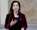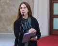 Deputy Prime Minister and Minister of Infrastructure and Energy, Belinda Balluku speaking at a press conference in front of the Prime Minister's office, after a meeting of government, regarding the approved decisions.