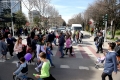 Citizens walking on the Deshmoret e Kombit boulevard, while traffic queues have been created as a result of the boulevard being blocked during the Summer Day celebrations.