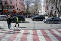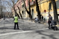 A policeman is standing on Mylsym Shyri street while traffic queues have been created as a result of road closures as a result of summer day celebrations.