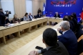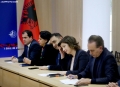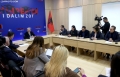 MPs Flamur Noka, Tritan Shehu, Albana Vokshi and Ina Zhupa during a meeting of former Prime Minister Sali Berisha with members of the DP parliamentary group, the supporter of his group, in the blue headquarters. Berisha attacked Prime Minister Edi Rama and spoke about the finalization of the coalition for the May 14 local elections.