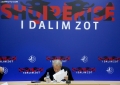 Former Prime Minister Sali Berisha during a meeting with members of the DP parliamentary group, the supporter of his grouping, in the blue headquarters. He attacked Prime Minister Edi Rama and spoke about the finalization of the coalition for the May 14 local elections.