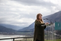 Minister of Tourism and Environment, Mirela Kumbaro speaking during the ceremony held in Tepelene for the declaration of the Vjosa River as a National Park, which comes as a result of a long campaign, including the participation of the actor Leonardo Dicaprio, to protect the last wild river in Europe. This status, approved by decision of the Council of Ministers, prohibits any kind of construction that affects the river.