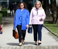 MPs Zheni Gjergji and Dhurata Cupi entering a parliamentary session, during which several draft laws were approved with the votes of both parties, the majority and the opposition.
