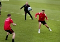 TRAINING SESSION OF THE NATIONAL TEAM - The coach of the Albanian national football team, the Brazilian Sylvio Mendes Canpos Junior (Silvinjo) and the players of the national team during a training session in the fields of the House of Football, on the eve of the match against Poland on March 27, valid for European Championship Germany 2024.