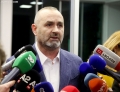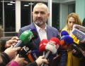 Minister of Intern, Bledar Cuci speaking to journalists after leaving the headquarters of the Socialist Party in Tirana, after a meeting of the party leadership regarding the May 14 elections. After 3 hours, the political leaders of the districts announced the names of the candidates for each municipality, where most of them will run again.