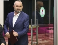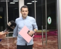 The chairman of the SP parliamentary group, Taulant Balla exiting the headquarters of the Socialist Party in Tirana, after a meeting of the party leadership regarding the May 14 elections. After 3 hours, the political leaders of the districts announced the names of the candidates for each municipality, where most of them will run again.