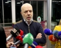 Minister of Defense, Niko Peleshi speaking to journalists after leaving the headquarters of the Socialist Party in Tirana, after a meeting of the party leadership regarding the May 14 elections. After 3 hours, the political leaders of the districts announced the names of the candidates for each municipality, where most of them will run again.