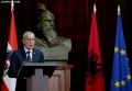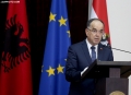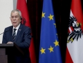 The President of the Federal Republic of Austria, Alexander Van Der Bellen speaking during a joint conference with the President of the Republic of Albania, Bajram Begaj in the premises of the Presidency. The two presidents spoke about the Ohrid agreement between Kosovo and Serbia, as well as bilateral relations between Albania and Austria.