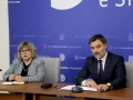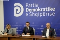 The chairman of the DP parliamentary group, Enkelejd Alibeaj and the candidate for the Tirana municipal council, Enriketa Papa speaking at a press conference at the new headquarters of the democratic party. Alibeaj presented Roland Bejko and Papa as candidates for Tirana, while talking about the possibilities in the May 14 elections, as they will face not only the SP candidates, but also the group that supports Sali Berisha.