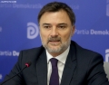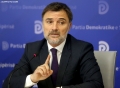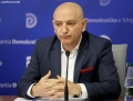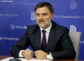 The chairman of the DP parliamentary group, Enkelejd Alibeaj speaking a press conference at the new headquarters of the democratic party. Alibeaj presented Roland Bejko (mayor) and Enriketa Papa (municipal council) as candidates for Tirana, while talking about the possibilities in the May 14 elections, as they will face not only the SP candidates, but also the group that supports Sali Berishen.