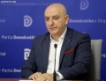 The chairman of the DP parliamentary group, Enkelejd Alibeaj and the candidate for the Tirana municipality, Roland Bejko speaking at a press conference at the new headquarters of the democratic party. Alibeaj presented Roland Bejko and Enriketa Papa (municipal council) as candidates for Tirana, while talking about the possibilities in the May 14 elections, while they will face not only the SP candidates, but also the group that supports Sali Berishen.