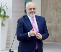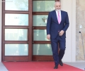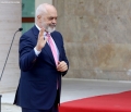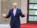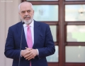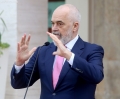 Prime Minister Edi Rama leaving a press conference in front of the Prime Minister's Office. He has stated that he aims to increase the average salary in the administration to 900 EUR and that pensioners will receive an additional 5000 Lek in their next payment.