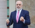 RAMA SPEAKS IN FRONT OF THE PRIME MINISTER'S OFFICE - Prime Minister Edi Rama speaking at a press conference in front of the Prime Minister's Office. He has stated that he aims to increase the average salary in the administration to 900 EUR and that pensioners will receive an additional 5000 Lek in their next payment.