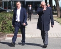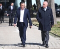 MP Bujar Leskaj and Isuf Celaj entering a parliamentary session. In this session, a draft law, a draft resolution and a draft decision were approved.