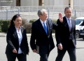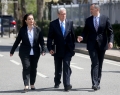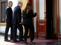 MP Albana Vokshi, Sali Berisha and Isuf Celaj entering a parliamentary session. In this session, a draft law, a draft resolution and a draft decision were approved.