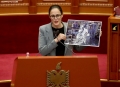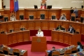 MP Enslemvera Zake speaking during a parliamentary session. In this session, a draft law, a draft resolution and a draft decision were approved.