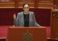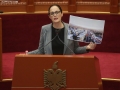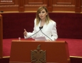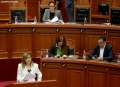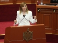 MP Jorida Tabaku speaking during a parliamentary session. In this session, a draft law, a draft resolution and a draft decision were approved.