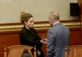 Minister of Tourism and Environment, Mirela Kumbaro and Minister of Defense, Niko Peleshi speaking during a parliamentary session. In this session, a draft law, a draft resolution and a draft decision were approved.