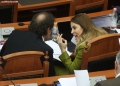 MPs Blerina Gjylameti and Eduard Shalsi speaking during a parliamentary session. In this session, a draft law, a draft resolution and a draft decision were approved.