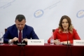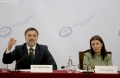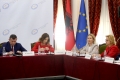 The chairman of the SP parliamentary group, Taulant Balla, Blerina Gjylameti, Klotilda Bushka and the representative of the Council of Europe, Louise Barton speaking during a table discussion in the premises of the parliament headquarters regarding the opening of files to former security and their removal from Albanian politics. During the discussions, the proposal of the group supporting Sali Berisha was excluded, while both sides agreed on the complete opening of the files.